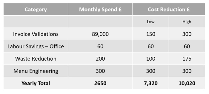 We have witnessed the result of these procedures add to the revenue in mid to long term. Other opportunities to maximise profitability involve making recommendations, where appropriate, on menu flexibility, cost, seasonality and possible substitution of goods used.